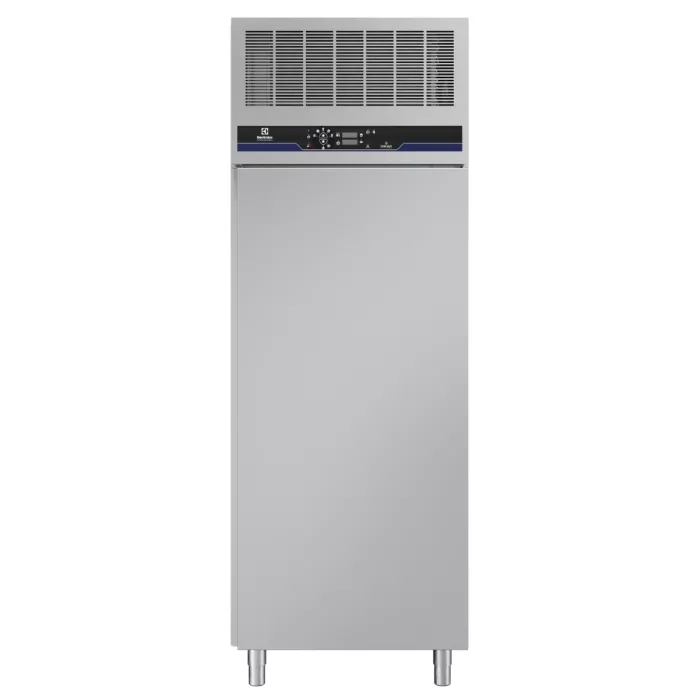 Blast Chiller & Freezer Crosswise; Capacitate: 20 tavi GN 1/1; Capacitate de incarcare: racire 100 kg; congelare 65 kg; Control digital cu afisaj pentru timp, temperatura, alarme si informatii de service; Deschidere usa reversibila pe site; Sistem de racire cu ventilatie si evaporator cu protectie anticoroziva; Cicluri automate: racire soft, racire hard, congelare, turbo cooling, decongelare; Functii speciale: estimare timp ramas cu inteligenta artificiala ARTE, mentinere automata la +3°C sau -20°C dupa finalizarea ciclului; Dezghetare automata si manuala; Sonda de temperatura centrala cu un singur punct; Constructie din otel inoxidabil AISI 304; Colturi interioare rotunjite si cadru usa incalzit automat; Izolatie din poliuretan de inalta densitate, grosime 60 mm; Agent frigorific: R452A; Cantitate agent frigorific: 2400 g; Putere frigorifica: 5.44 kW; Temperatura ambientala de +40 °C (clasa climatica 5); Putere electrica: 4.4 kW; Alimentare: 400V/3F/50Hz; Dimensiuni: 800x833x2232 mm; Greutate: 230 kg