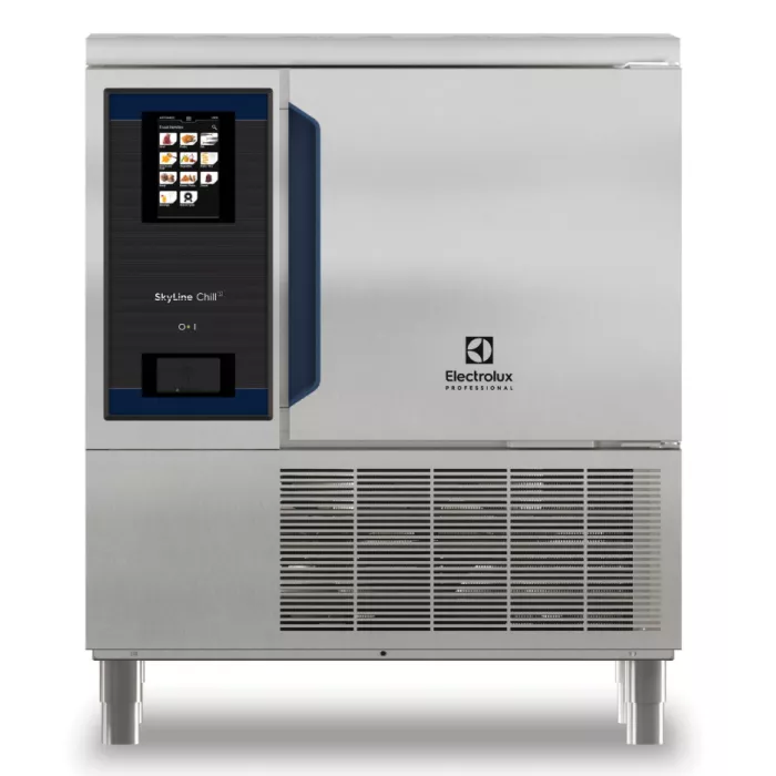 Blast Chiller Skyline 6 tavi GN 1/1; Control touch screen; Capacitate de incarcare: racire 30 kg; congelare 30 kg; Deschidere usa de la stanga la dreapta; Sistem de distributie a aerului OptiFlow pentru a obtine performante maxime cu 7 niveluri de viteza a ventilatorului; Cicluri speciale: dospire, dospire lenta, decongelare rapida, Sushi&Sashimi, Sous Vide lent, inghetata, iaurt, ciocolata; Functii speciale: MultiTimer racire/inghetare, Make-it-Mine pentru a personaliza interfata, SkyHub pentru a personaliza pagina de pornire, agenda MyPlanner, conexiune SkyDuo la cuptoarele SkyLine; Dezghetare si uscare automata si manuala; Port USB pentru descarcarea de date, programe si setari HACCP; Sonda de temperatura centrala cu senzor multiplu in 3 puncte; Constructie din otel inoxidabil; Colturi interioare rotunjite; Agent frigorific: R290; Temperatura ambientala de +43 °C (clasa climatica 5); Putere: 2.7 kW; Alimentare: 400V/3F+N/50Hz; Dimensiuni: 897x937x1060 mm; Greutate: 175 kg