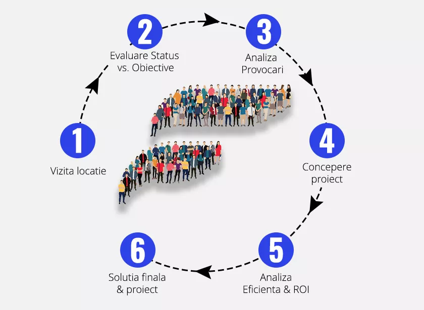 Capacitatea de a asculta cu atentie cerintele pe proiect si focusul pe detalii ne permite sa ne concentram pe plus valoare, sustinand afacerea ta prin reducerea ineficientelor si a pierderilor tehnologi, precum si pentru eficientizarea fluxurilor de lucru. Aceasta este metodologia Fresco Expert, un ciclu strategic de procese, special concepute pentru a furniza cele mai bune solutii pe proiect.