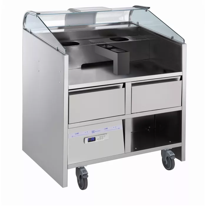 Statie mobila live-cooking Libero Point Electrolux Professional cu 2 sertare refrigerate. Adecvat pentru 2 aparate din gama Libero HP