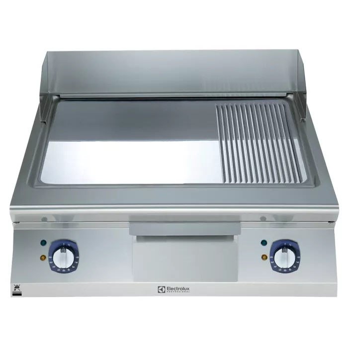 Gratar de banc Electrolux Professional cu placa 2/3 neteda si 1/3 striata inclinata cromata, alimentare electrica, modul complet, control prin termostat