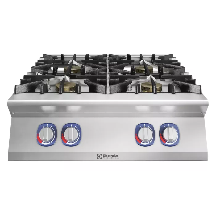 Masina de gatit cu 4 arzatoare EcoFlame Ø 100 mm, alimentare gaz; Putere arzatoare: 4x 10 kW; Panouri laterale din otel inoxidabil cu finisaje Scotch Brite
