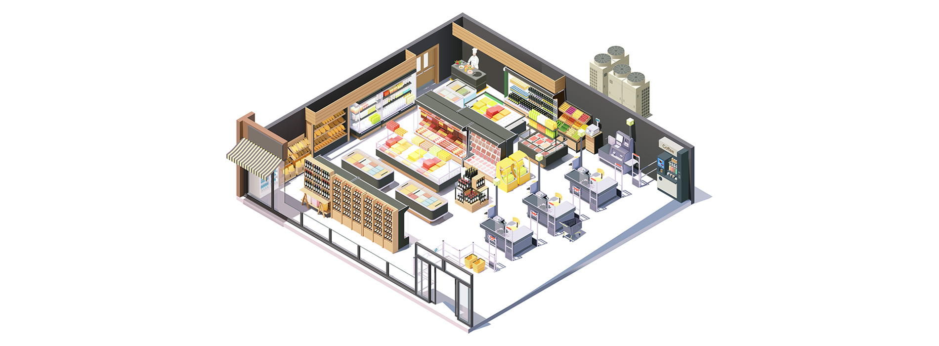 Solutiile noastre raspund provocarilor din FMCG pentru mentinerea in volume mari a bunurilor perisabile, in parametrii recomandati de catre producatori, precum si ameliorarea expunerii produselor pe zonele reci si calde. Linii de camere refrigerare si congelare, agregate, vitrine si display-uri refrigerate, planuri reci si calde sau lazi frigorifice de capacitati diverse sunt doar cateva dintre ehipamentele pe care le putem include in proiectul tau de Retail.