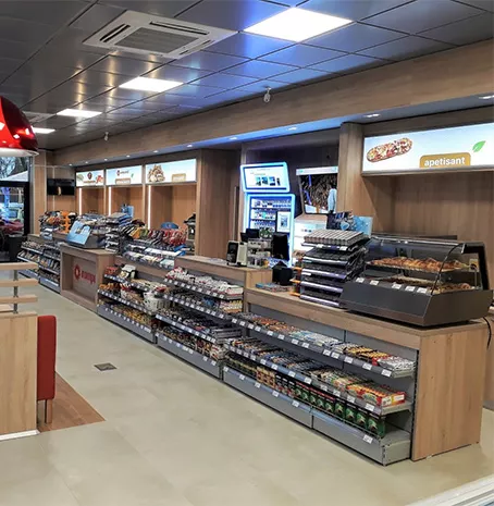 Solutii si sisteme integrate pentru mobilare zone comerciale: rafturi si gondole comerciale, module case de marcat, elemente de ghidare trafic si signalistica, gama completa de accesorii pentru Retail.